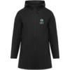 Wodoodporna kurtka przeciwdeszczowa. Kaptur z daszkiem. Zgrzewane zamki błyskawiczne i szwy. Kontrastowe detale w kolorze czarnym. Dwie kieszenie boczne z zamkiem błyskawicznym. Rozcięcie z tyłu. Usuwalna metka. Wodoodporna.