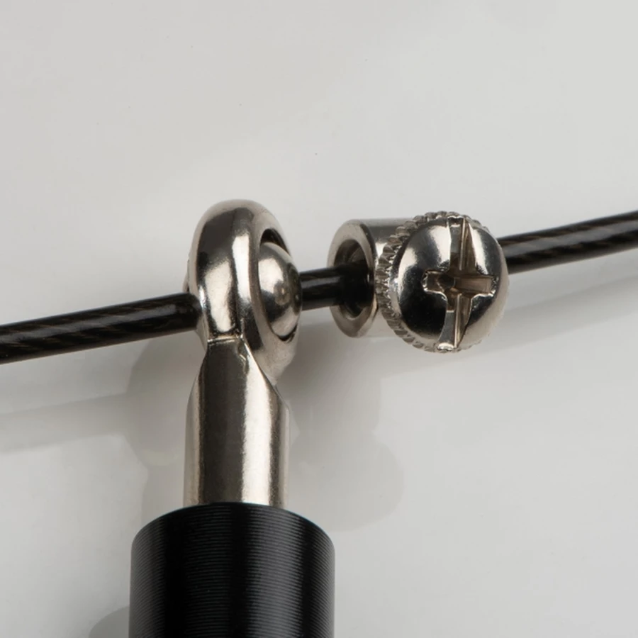 Profesjonalna skakanka z możliwością regulacji długości i metalowymi łożyskami do szybkich obrotów. Rączki ze stali nierdzewnej, linka stalowa wyposażona w powłokę ochronną.