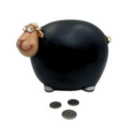 Skarbonka w kształcie owieczki wykonana z trwałego polyresinu, dzięki pokryciu farbą tablicową, pełni równie rolę powierzchni do personalizcji. Możliwe jest swobodne pisanie i rysowanie kredą, co daje dodatkowy wymiar funkcjonalny. Doskonale sprawdzi się jako element dekoracyjny w pokoju dziecięcym, przestrzeni kreatywnej (jako zabawny i funkcjonalny element wystroju) lub kuchni w stylu rustykalnym.