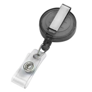 Skipass wykonany z tworzywa, z metalowym zaczepem, wysuwaną linką na której można zawiesić identyfikator lub inny dokument.