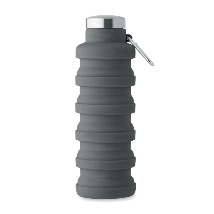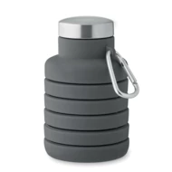 Składana silikonowa butelka z pokrywką ze stali nierdzewnej i z aluminiowym karabińczykiem. Karabińczyk nie jest przeznaczony do wspinaczki (nie do użytku profesjonalnego). Pojemność: 500 ml.
