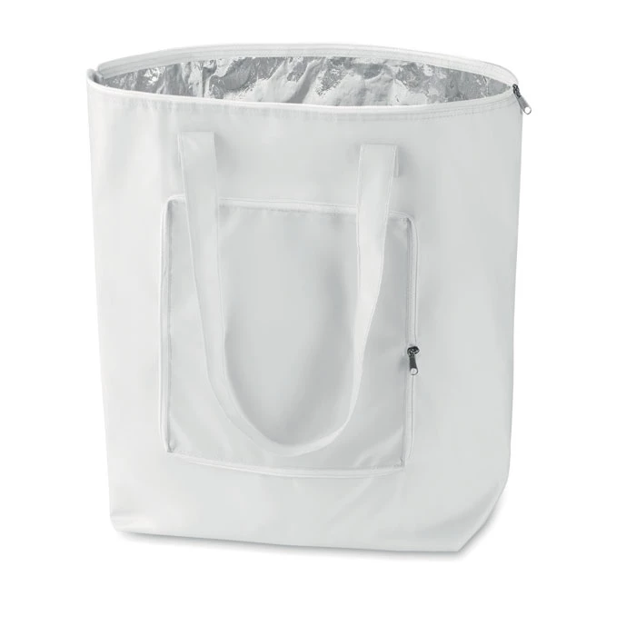 Wygodna składana torba chłodząca. Doskonała na produkty mleczne. 210D poliester z aluminiową folią wewnątrz. Materiał izolacyjny: Folia aluminiowa. Pojemność 13L.