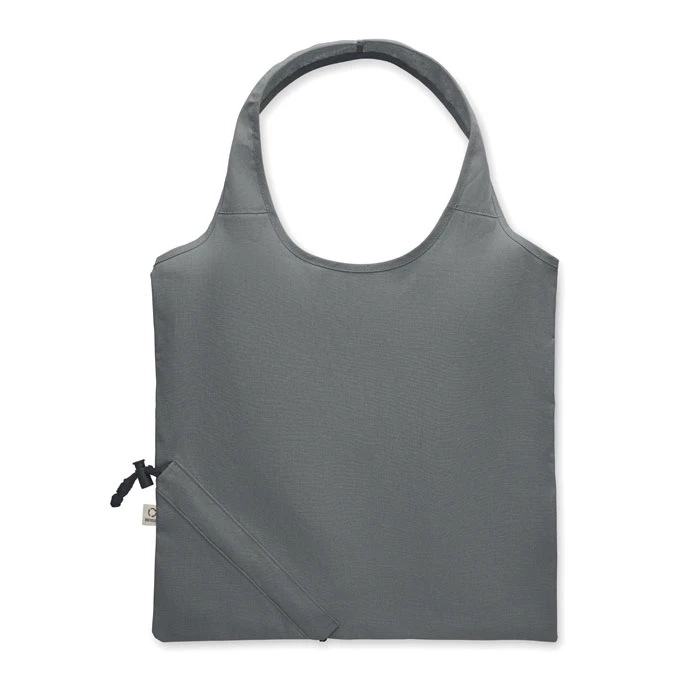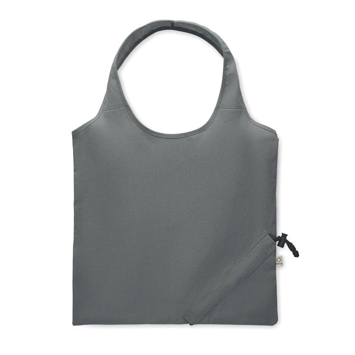 Składana torba na zakupy z bawełny pochodzącej z recyklingu (70% bawełny z recyklingu i 30% RPET). 140 gr/m². Ten produkt może się kurczyć po zadrukowaniu.