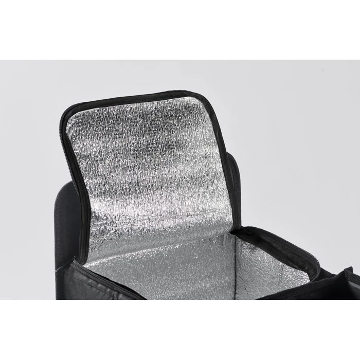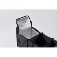 Składany organizer samochodowy z poliestru 600D RPET z 3 przegrodami, w tym jedną przegrodą termiczną.