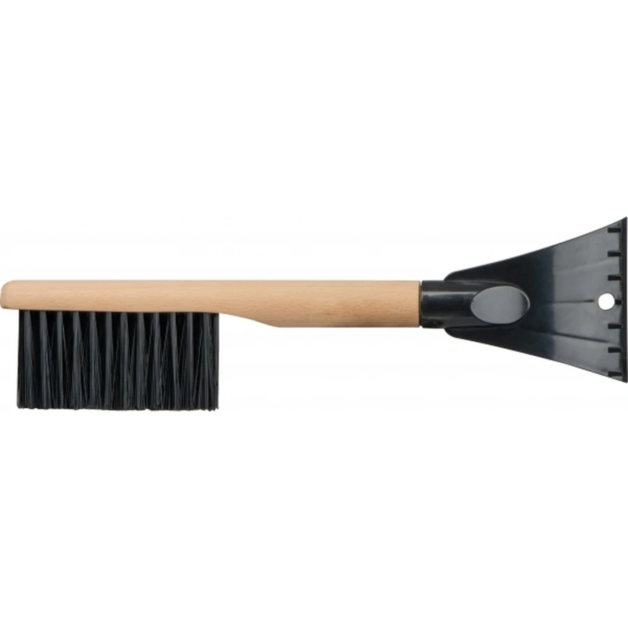 Skrobaczka do szyb z miotełką, na drewnianej rączce. Długość 38 cm.
