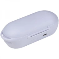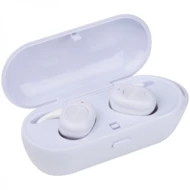 Słuchawki douszne Bluetooth z kablem ładującym USB oraz stacją ładującą, która jednocześnie pełni funkcje etui. Czas pracy: 2-3h, czas ładowania: 1h, bateria 35mAh. Dostępy kolor: biały.