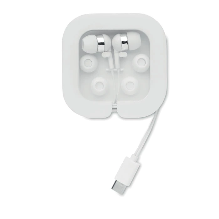 Silikonowe słuchawki douszne, które pomagają wygłuszyć hałas zewnętrznym, zapewniając lepszą jakość dźwięku. Zapakowane w plastikowe pudełko, w którym można prawidłowo przechowywać kabel o długości 120 cm. W zestawie 3 zapasowe silikonowe nakładki w różnych rozmiarach. Złącze: Typ-C.