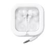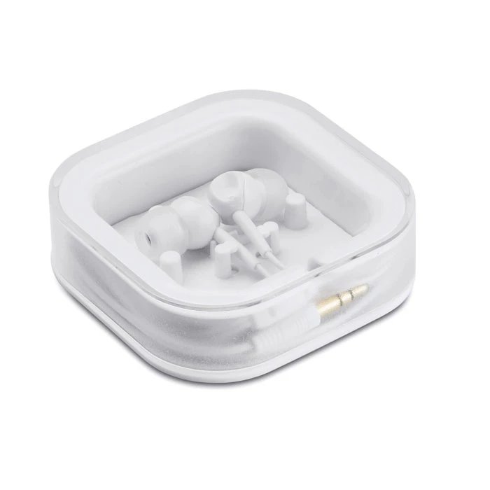 Pokryte silikonem słuchawki z kablem 120cm. Specjalne wyciszenie hałasów z zewnątrz. Plastikowe pudełko, w którym można również przechowywać kabel. Dołączone 2 zapasowe silikonowe nakładki w różnych rozmiarach.