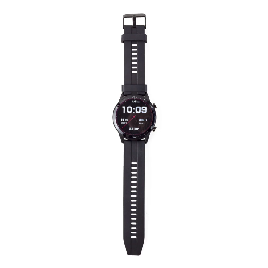 Smartwatch z termometrem do mierzenia temperatury ciała i 1,3-calowym ekranem dotykowym oraz zintegrowaną kamerą. Śledzi codzienną aktywność fizyczną i posiada tryb multisport. Bateria 3,7 V / 240 mAh. RAM 128 kB / ROM 64 Mb.