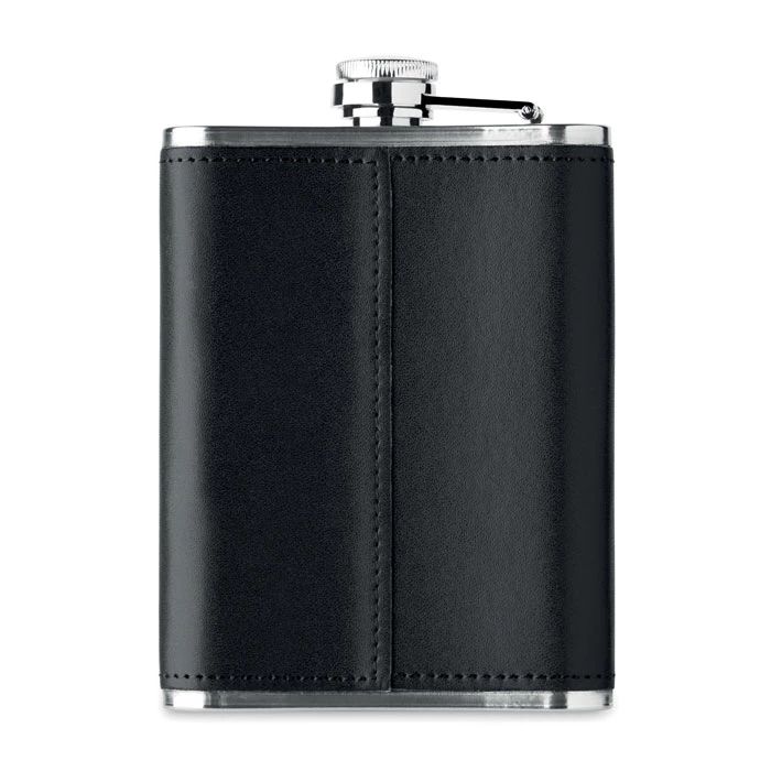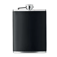 Smukła piersiówka ze stali nierdzewnej z pokrowcem ze skóry PU. pojemność 200 ml.