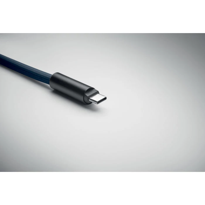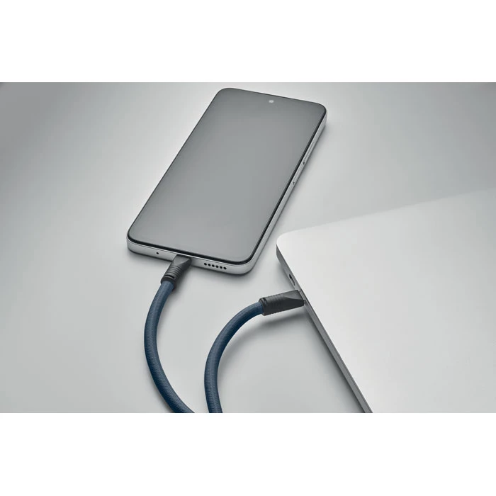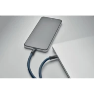 Smycz do telefonu z kablem 60W do ładowania i przesyłania danych typu C do typu C Z RPET z dodatkowym klipsem na klucze.