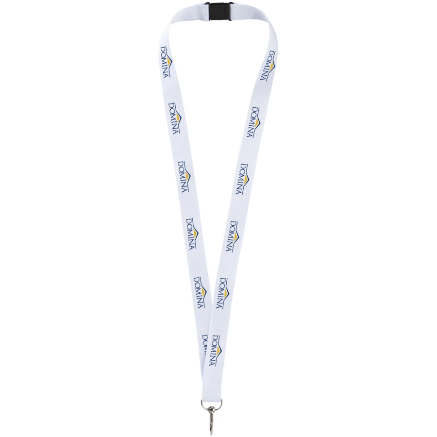 Smycz ta idealnie nadaje się do zawieszenia plakietki z imieniem, karty ID lub kluczy. Dzięki złączce łatwo odczepiać rzeczy bez ryzyka zaklinowania. Jeśli nadruk będzie obejmował to samo logo na obu stronach, koszt przygotowania liczony jest jednokrotnie. Koszty produkcji pozostają bez zmian.