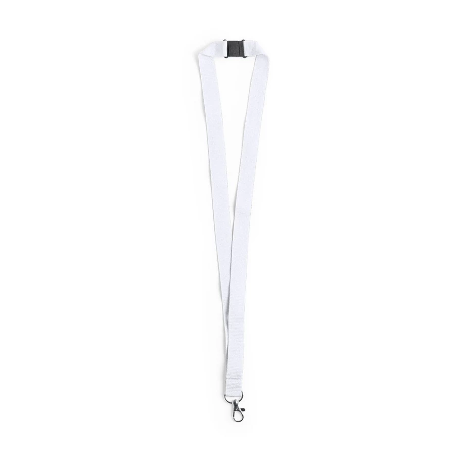 Smycz reklamowa, posiada rozpinany zatrzask bezpieczeństwa zapobiegający zaciśnięciu smyczy na szyi