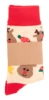 Para świątecznych skarpetek wykonanych w 73% z bawełny, 25% poliestru RPET i 2% spandexu. Z paskiem z papieru kraft do nadruku.