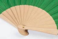 Wachlarz wykonany z poliestru RPET z drewnianymi żebrami.