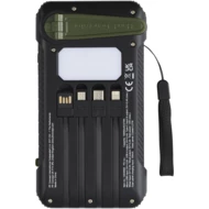 Soldy plastikowy powerbank RCS o pojemności 10 000 mAh z recyklingu jest idealnym towarzyszem do ładowania podczas aktywności na świeżym powietrzu. Jest on wyposażony w ręczny dynamo na korbkę do ręcznego generowania energii w przypadku wyczerpania się powerbanku i braku światła słonecznego. Powerbank można także ładować poprzez port typu C lub micro USB w urządzeniu. Dzięki wbudowanym kablom ładującym ze złączami typu C, iOS, USB-A i micro USB ten powerbank umożliwia ładowanie większości smartfonów, aparatów, powerbanków, słuchawek itp. Powerbank ma maksymalną moc wyjściową 2,4 A na port. Moc wejściowa jest ograniczona do 2 A. Dostarczany z instrukcją obsługi i kablem ładującym USB-A do USB typu C o długości 30 cm w pudełku z papieru Kraft pochodzącego w 100% z recyklingu.