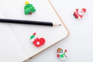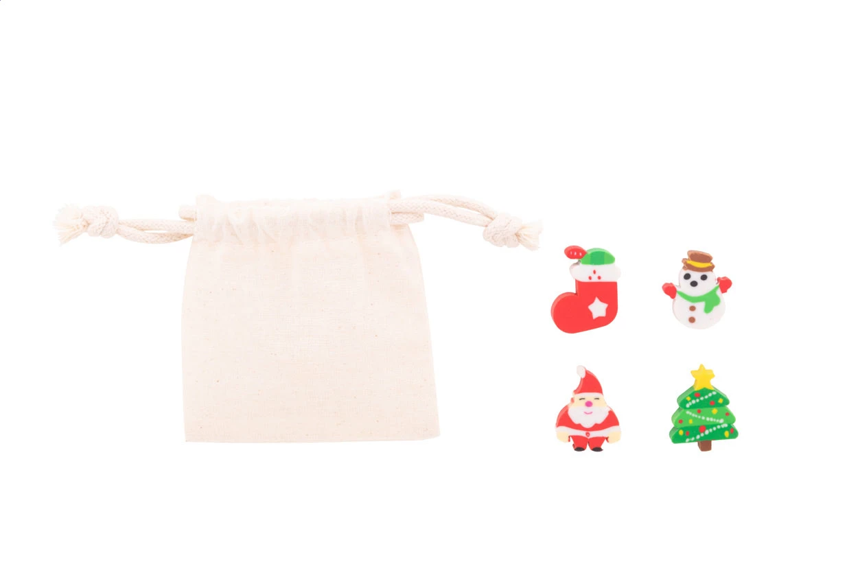 Zestaw 4 gumek do ścierania ze świątecznym wzorem, w bawełnianym etui.