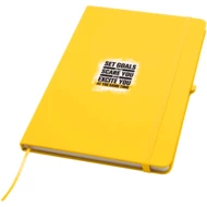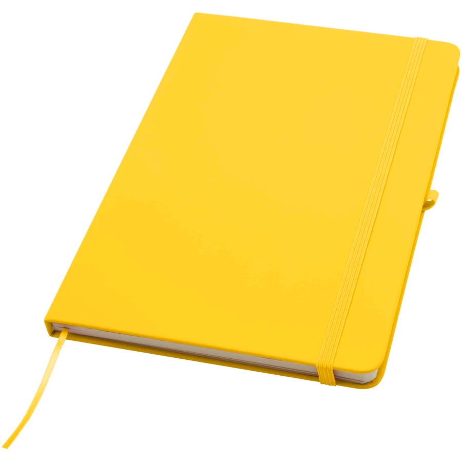 Notatnik Spectrum Plus w formacie A5 z twardą okładką i zaokrąglonymi rogami to nie tylko niezbędny element wyposażenia biura, ale także świetna okazja do promocji marki. Tekturowy notatnik ma miękką okładkę i 80 liniowanych, kremowych kartek o gramaturze 70 g/m². Jest idealny do zapisywania szybkich pomysłów lub dłuższych notatek. Notatnik jest wyposażony w szlufkę na długopis, elastyczne zamknięcie, wstążkową zakładkę i harmonijkową kieszonkę.