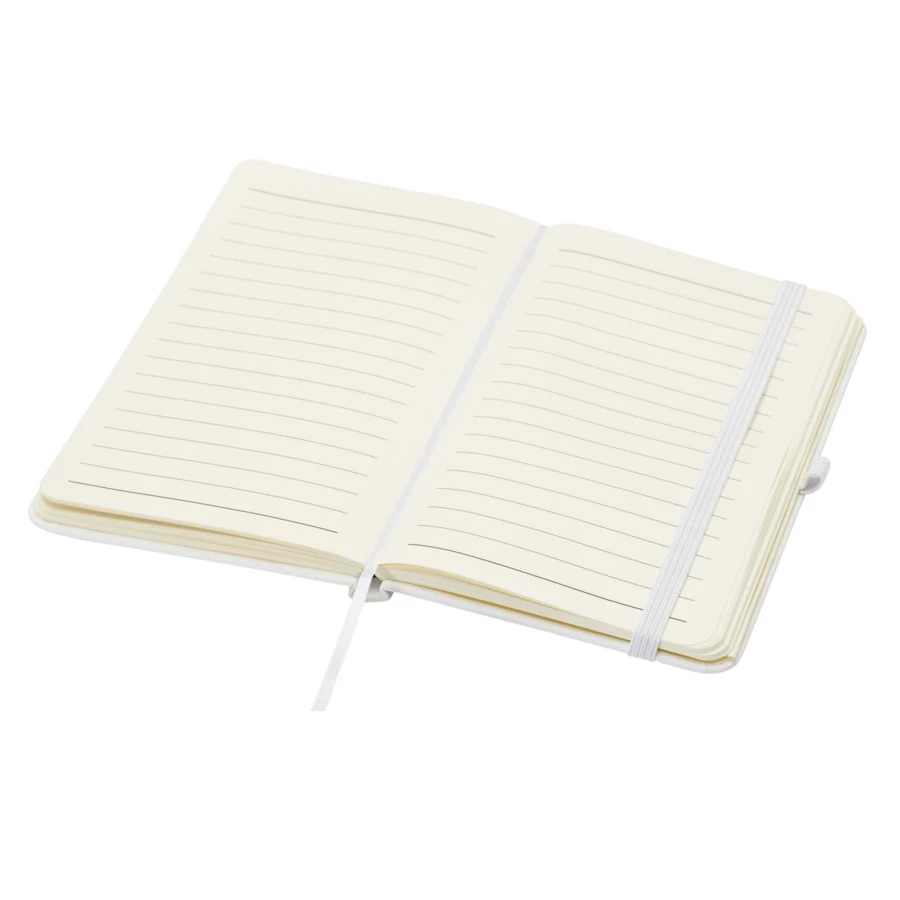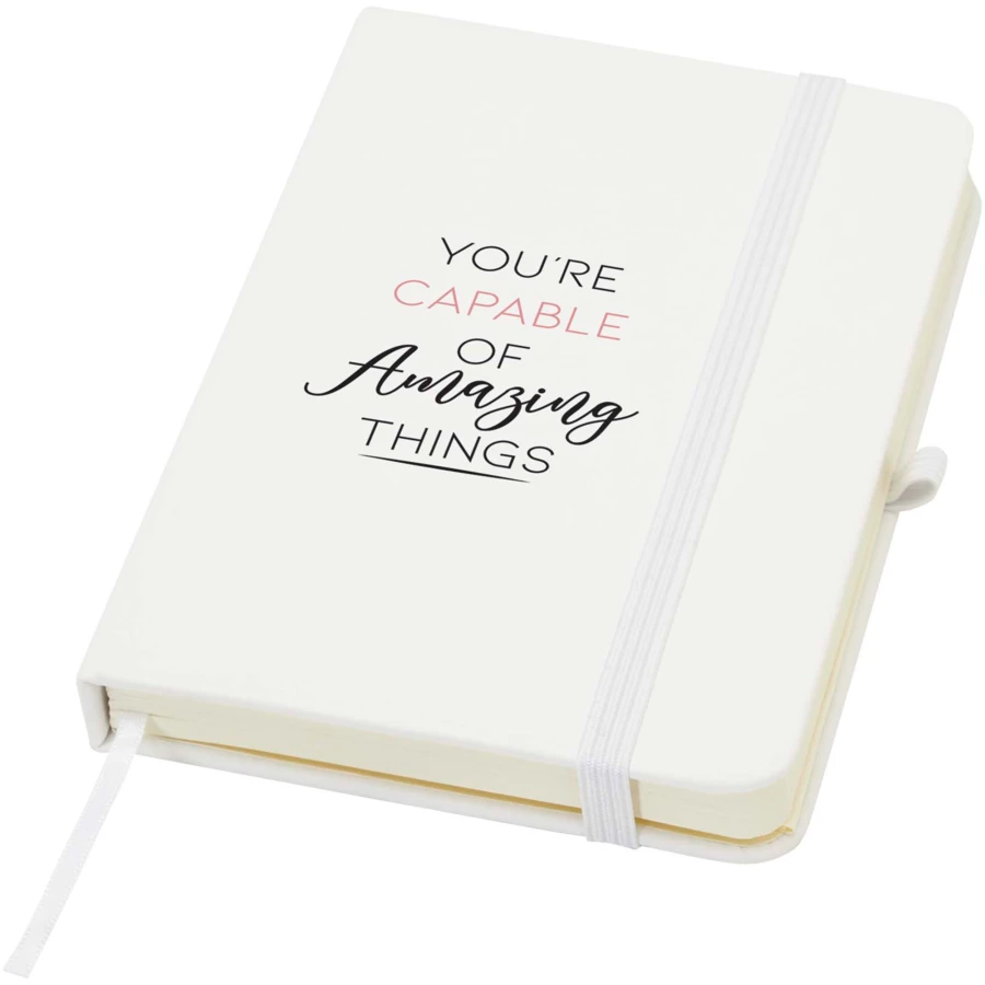 Notatnik Spectrum Plus w formacie A6 z twardą okładką i zaokrąglonymi rogami to nie tylko niezbędny element wyposażenia biura, ale także świetna okazja do promocji marki. Tekturowy notatnik ma miękką okładkę i 80 liniowanych, kremowych kartek o gramaturze 70 g/m². Jest idealny do zapisywania szybkich pomysłów lub dłuższych notatek. Notatnik jest wyposażony w szlufkę na długopis, elastyczne zamknięcie, wstążkową zakładkę i harmonijkową kieszonkę.