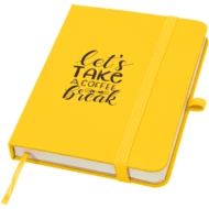 Notatnik Spectrum Plus w formacie A6 z twardą okładką i zaokrąglonymi rogami to nie tylko niezbędny element wyposażenia biura, ale także świetna okazja do promocji marki. Tekturowy notatnik ma miękką okładkę i 80 liniowanych, kremowych kartek o gramaturze 70 g/m². Jest idealny do zapisywania szybkich pomysłów lub dłuższych notatek. Notatnik jest wyposażony w szlufkę na długopis, elastyczne zamknięcie, wstążkową zakładkę i harmonijkową kieszonkę.