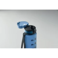 Sportowa butelka na wodę z RPET, motywujące oznaczenia czasu, otwierana jedną ręką klapka, blokada bezpieczeństwa i pasek do przenoszenia. Nie przecieka. Pojemność: 1 l.