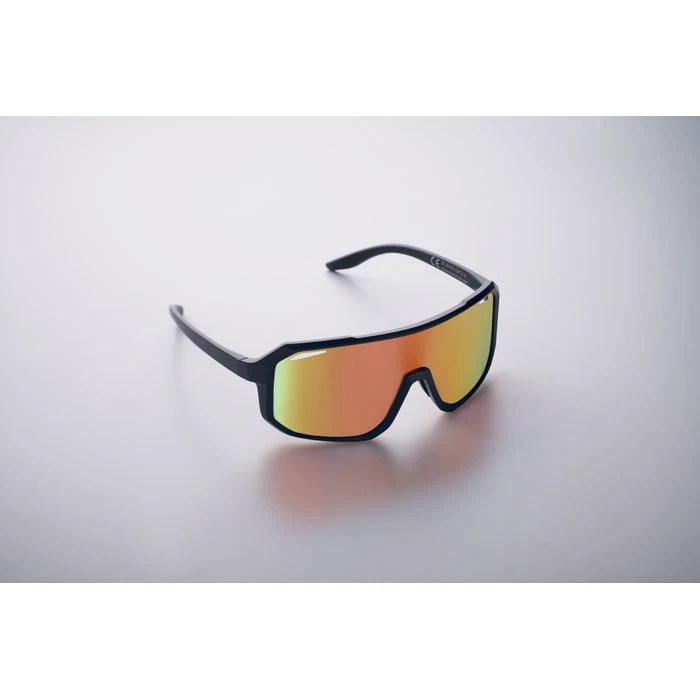 Sportowe okulary przeciwsłoneczne z lustrzanymi soczewkami i kolorową oprawką. Ochrona UV400.