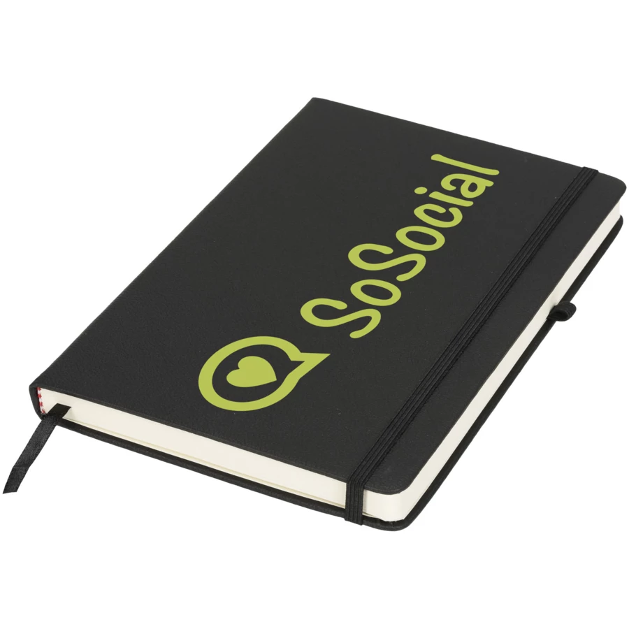 Seria Rivista to stylowe, nowoczesne notesy z wysokiej jakości, przyjemnymi w dotyku okładkami, idealnymi do ozdobienia własnym logo i informacjami o firmie. Dostępne w wybranych, nowoczesnych kolorach. Notes ma zamknięcie na gumkę, pętelkę na długopis, zakładkę ze wstążki oraz kieszeń na wewnętrznej stronie tylnej okładki. 128 kremowych kartek w linie (gramatura 70 g/m²).