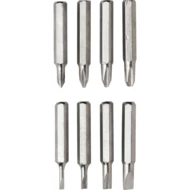 Śrubokręt w kształcie długopisu z 4 płaskimi i 4 krzyżakowymi końcówkami, posiada klip umożliwiający przypinanie, produkt wykonany z aluminium i stali