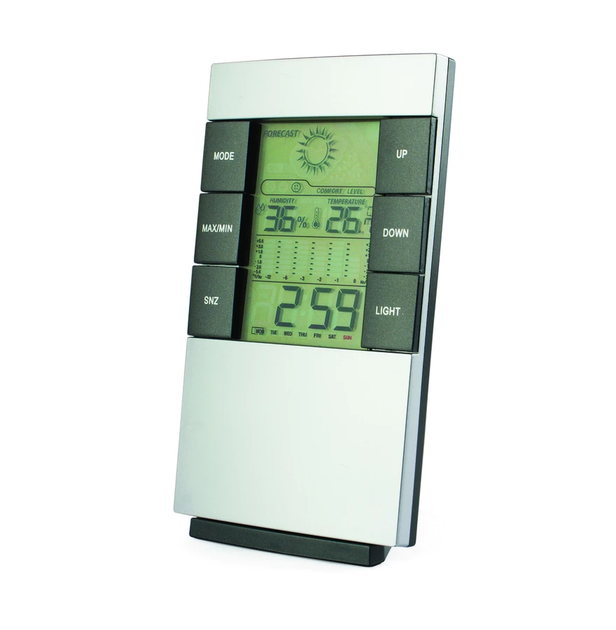 Używając tej nowoczesnej stacji prognozowanie pogody nie będzie już stanowiło problemu. Stacja posiada następujące funkcje:termometr (max/min), higrometr (max/min), zegar z budzikiem, kalendarz, biometr, przewidywanie pogody, podświetlenie ekranu. Logo nadrukujemy lub wygrawerujemy z przodu produktu.