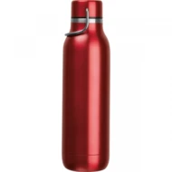 Butelka do picia ze stali nierdzewnej z podwójnymi ściankami z uchwytem do noszenia na pokrywce i pojemnością 600 ml.