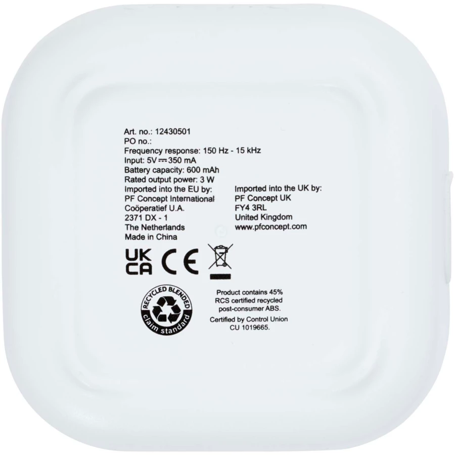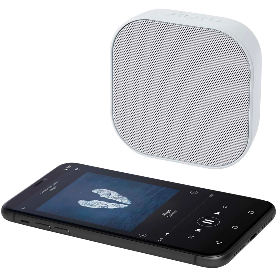 Głośnik Bluetooth® z certyfikatem RCS o mocy 3 W, odtwarzający muzykę, podcasty itp. z dowolnego urządzenia obsługującego technologię Bluetooth®, co czyni go idealnym towarzyszem na każdą okazję. Głośnik posiada wbudowane sterowanie muzyką oraz mikrofon do rozmów telefonicznych i spotkań online. Zapewnia nawet 3–4 godziny muzyki przy maksymalnej głośności. Czas ładowania wynosi 3 godziny. Bluetooth® 5.3 z zasięgiem roboczym wynoszącym około 10 metrów. Dostarczany z instrukcją obsługi i kablem ładującym USB-A do USB typu C o długości 30 cm oraz zapakowany w kartonowe pudełko ze zrównoważonych źródeł, pochodzące w 100% z recyklingu.