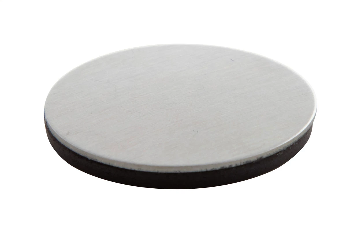 Okrągły magnes na lodówkę z powierzchnią ze stali nierdzewnej.