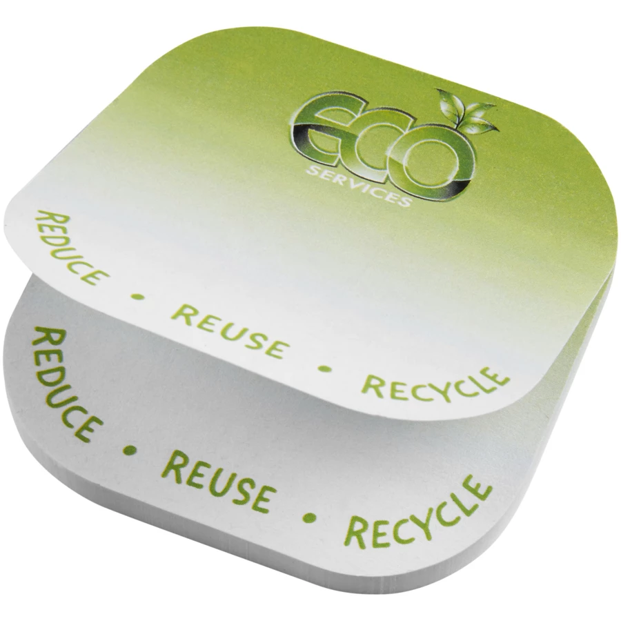 Zrób wrażenie dzięki tym kwadratowym karteczkom samoprzylepnym Sticky-Mate® z zaokrąglonymi narożnikami. Zawiera 50 arkuszy papieru z recyklingu o gramaturze 80 g/m2. Możliwość pełnego, kolorowego nadruku na każdym arkuszu.