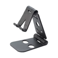 Składana i regulowana podstawka do telefonu komórkowego stworzona z myślą o bezproblemowym korzystaniu ze smartfona w trakcie tele i wideokonferencji. Przemyślana ażurowa konstrukcja pozwala na podpięcie ładowarki od dołu podczas gdy telefon pozostaje stabilny ustawiony w pozycji pionowej. Nieużywana składa się do poręcznych rozmiarów. Telefon nie jest dołączony.