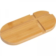 Podkładka wykonana z drewna bambusowego, dwa rozmiary wycięć pozwalają na umieszczenie na niej zarówno telefonu jak i tableta.