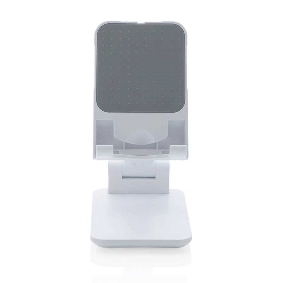 Stojak na telefon, tablet, wykonany z ABS, regulowana wysokość, silikonowy element chroniący przed zarysowaniem w którym można umieścić ładowarkę Magsafe, ciężka podstawa i silikonowe paski zapewniają stabilność, ślad węglowy produktu: 1,03 kg CO2