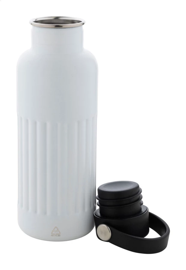 Butelka izolowana próżniowo, z podwójnymi ściankami, wykonana ze stali nierdzewnej z recyklingu, z plastikową pokrywką PP. Pojemność 500 ml.