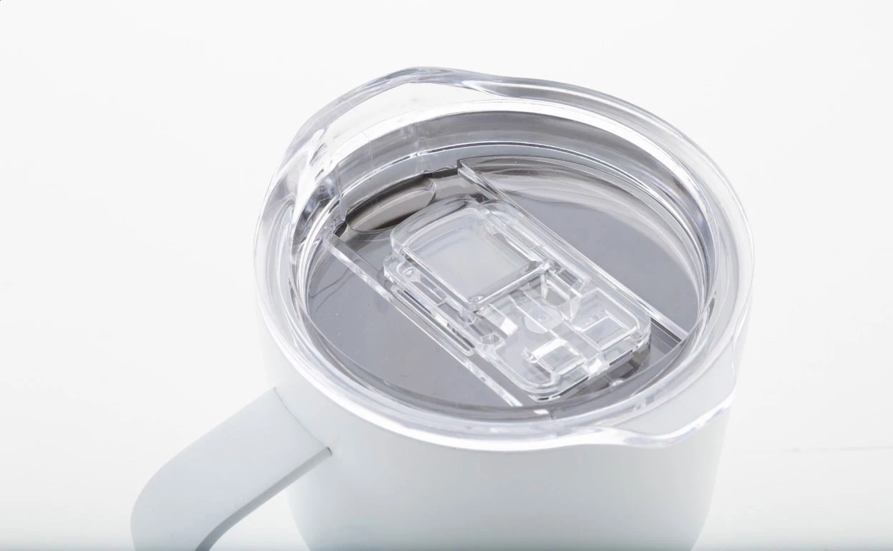 Izolowany kubek termiczny z podwójnymi ściankami, wykonany ze stali nierdzewnej z recyklingu, z pokrywką z tworzywa ABS. Pojemność 470 ml.