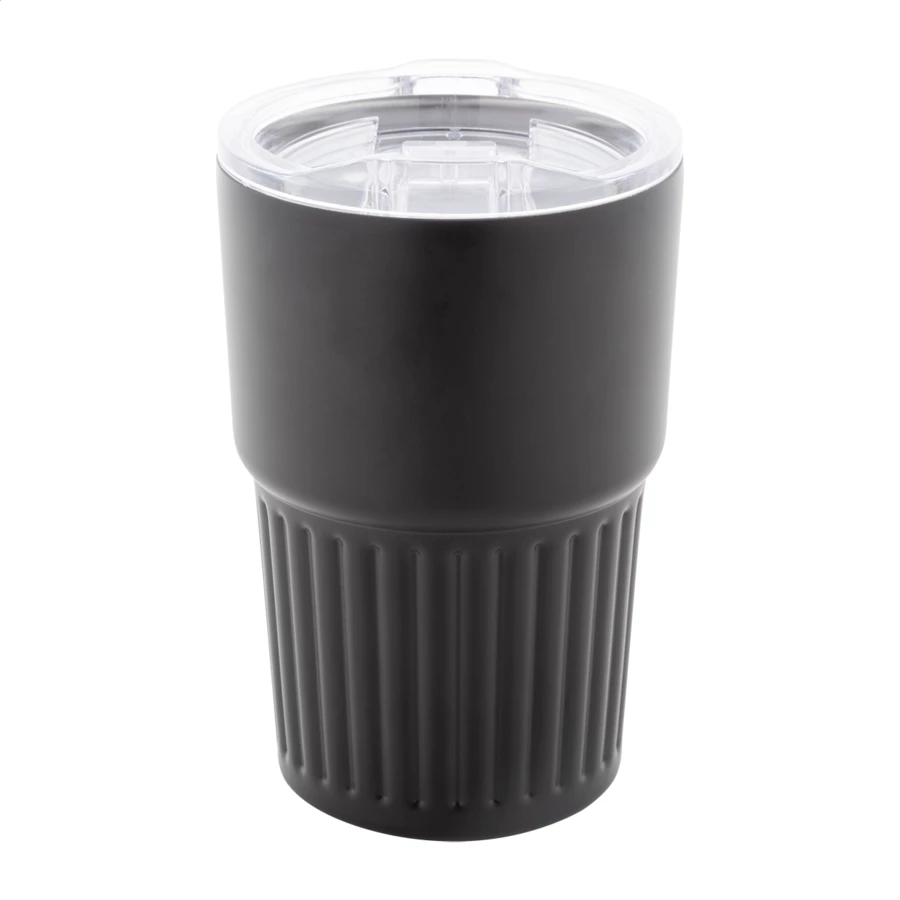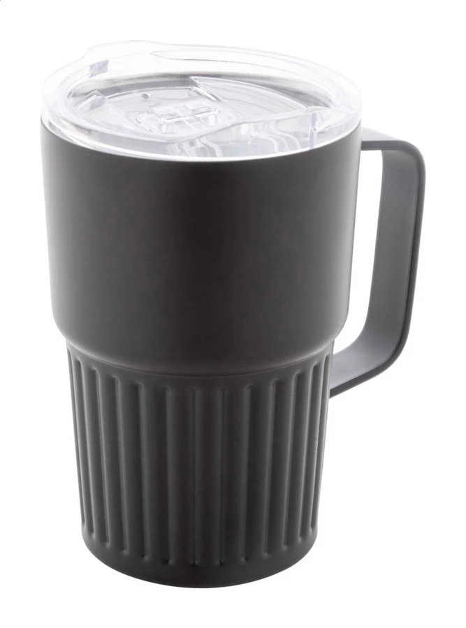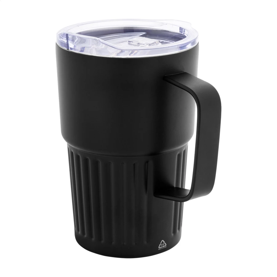 Izolowany kubek termiczny z podwójnymi ściankami, wykonany ze stali nierdzewnej z recyklingu, z pokrywką z tworzywa ABS. Pojemność 470 ml.