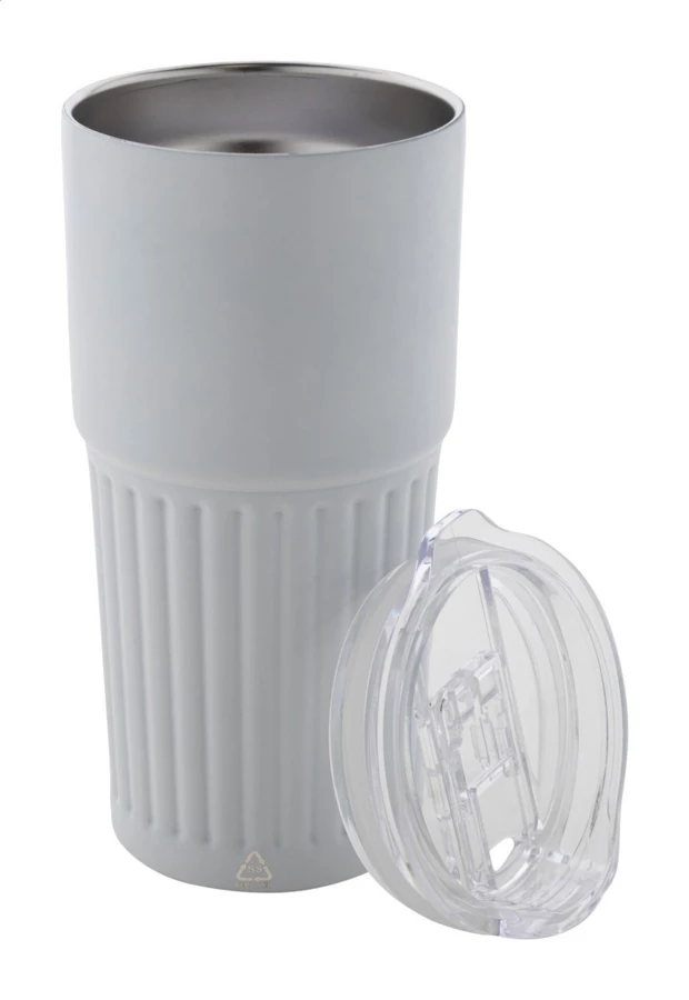 Izolowany kubek termiczny z podwójnymi ściankami, wykonany ze stali nierdzewnej z recyklingu, z pokrywką z tworzywa ABS. 600 ml.