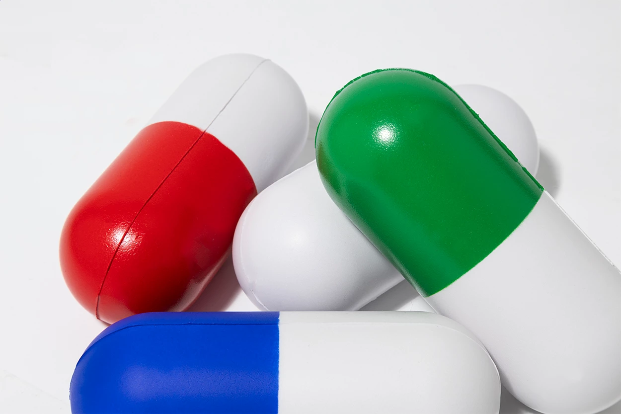 Antystres w kształcie kapsułki, wykonany z pianki PU.