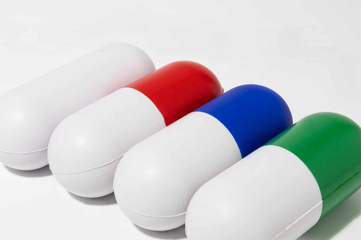 Antystres w kształcie kapsułki, wykonany z pianki PU.