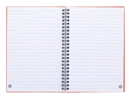 Spiralny notes w oprawie z papieru z recyklingu, zawierający 80 kartek w linie z papieru z recyklingu. Format A5.