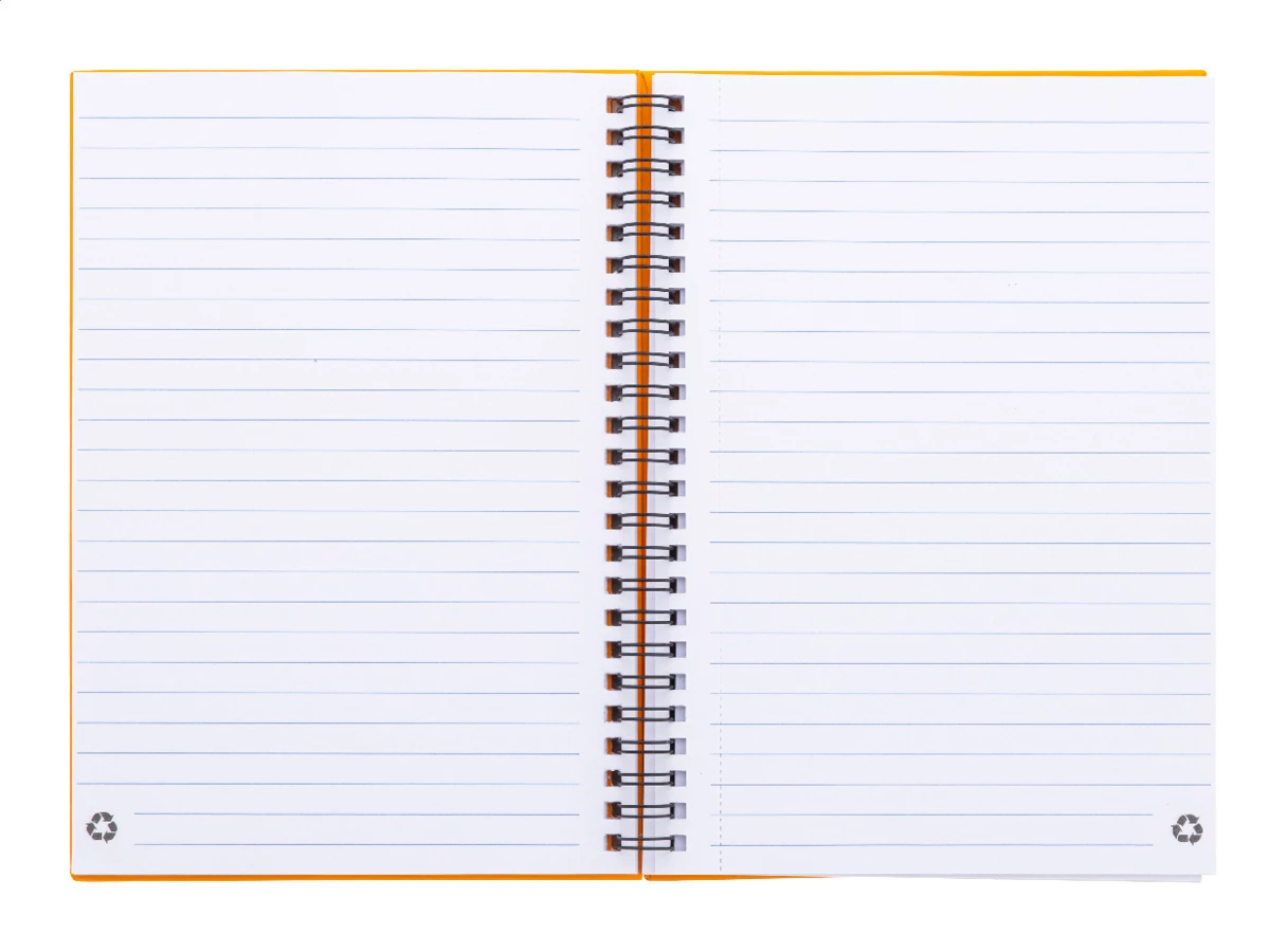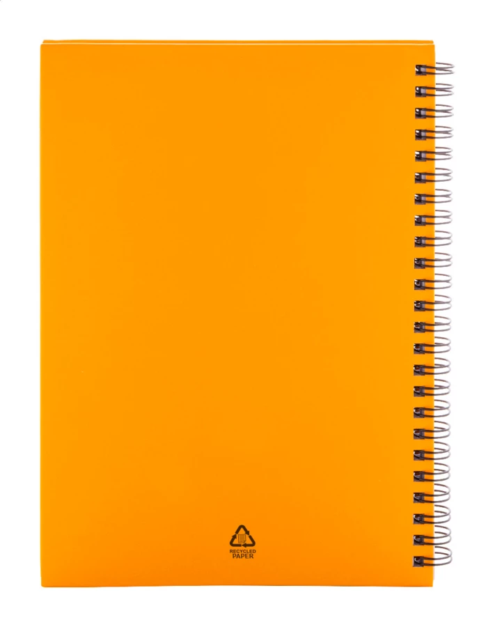 Spiralny notes w oprawie z papieru z recyklingu, zawierający 80 kartek w linie z papieru z recyklingu. Format A5.