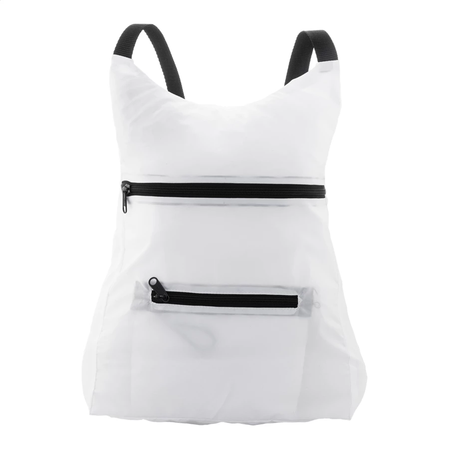 Składany plecak RPET wykonany na zamówienie z główną komorą na suwak i przednią kieszenią na suwak. Z nadrukowaną grafiką sublimacyjną na całej powierzchni. Poliester RPET 190T z charakterystyczną metką RPET. Min. ilość: 25 szt.