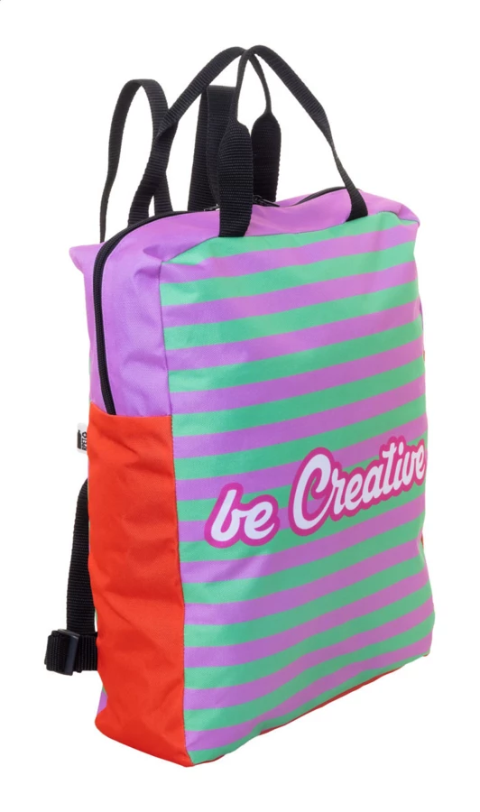 Smukły plecak na laptopa RPET wykonany na zamówienie z przegrodą na laptopa (15") zapinaną na suwak. Z nadrukowaną grafiką sublimacyjną na całej powierzchni. Poliester RPET 600D z charakterystyczną metką RPET. Min. ilość: 25 szt.