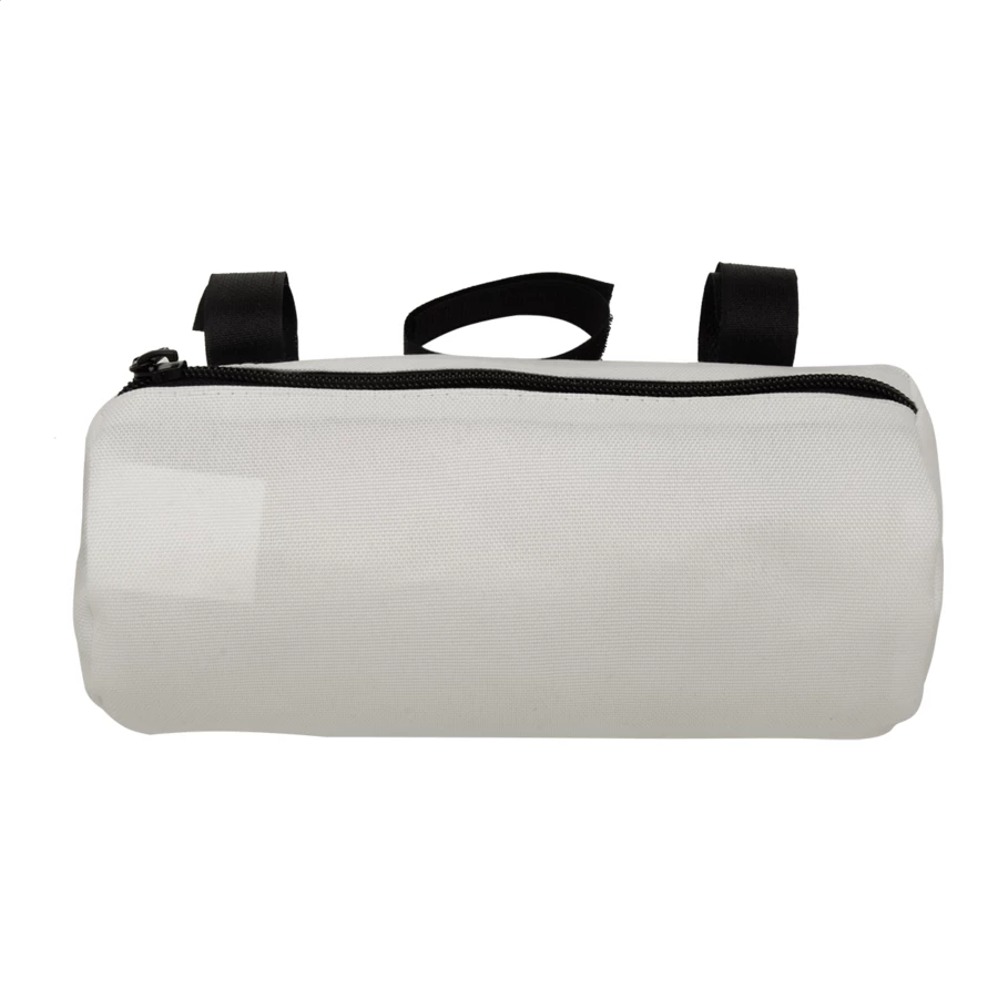 Personalizowana, zapinana na zamek torba rowerowa na kierownicę z poliestru 600D RPET z regulowanymi paskami na rzepy. Z nadrukowaną grafiką sublimacyjną na całej powierzchni i charakterystyczną metką RPET. Min. ilość: 25 szt.