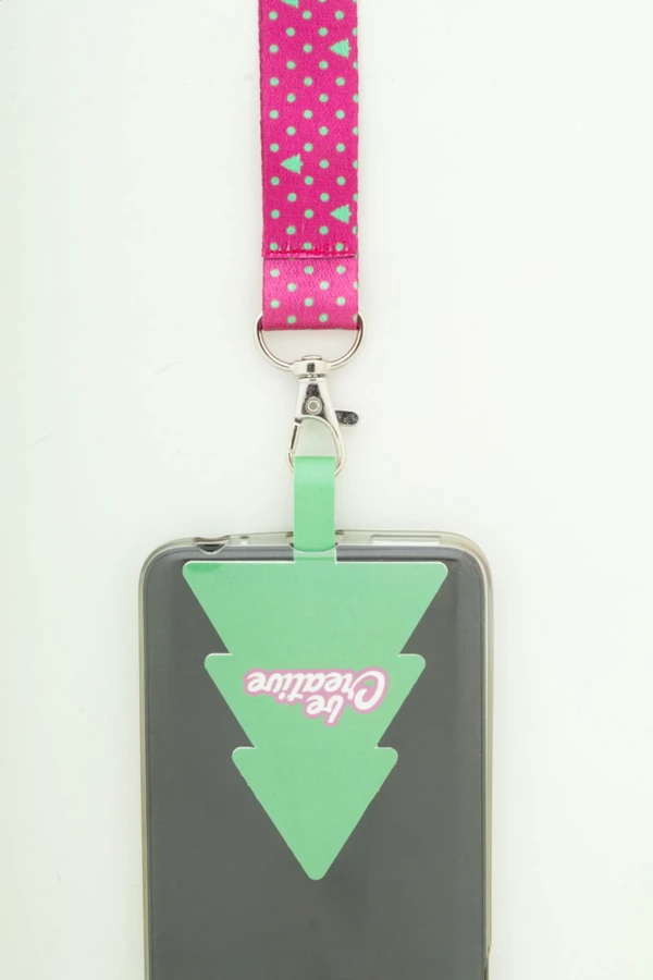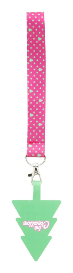 Personalizowany, pasek na nadgarstek do telefonu komórkowego RPET z metalowym karabińczykiem i full kolorową wkładką do telefonu w kształcie choinki, wykonaną z odpornego na rozdarcie papieru. Z grafiką nadrukowaną metodą sublimacji po obu stronach. Min. ilość: 100 szt.