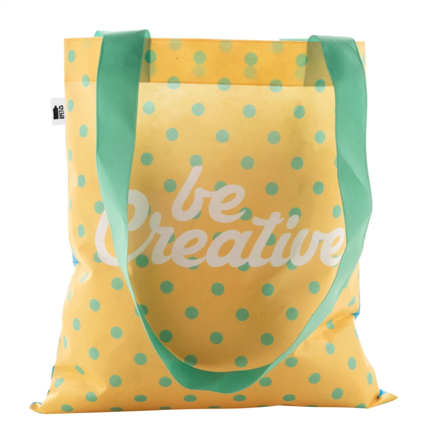 Personalizowana, torba z włókniny RPET z długimi uchwytami. 80 g/m². Z pełnym zadrukiem sublimacyjnym. Z metką RPET. Min. ilość: 25szt.