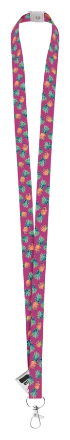 Personalizowana smycz 15mm z RPET z metalowym karabińczykiem i klamrą bezpieczeństwa z plastiku ze słomy pszenicznej. Z sublimacją po ubu stronach. Min. ilość: 100szt.